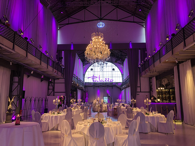 Erlebnis Gastronomie – ein Genuss für alle Sinne. Dafür steht die Palazzo Halle Karlsruhe seit 18 Jahren. Frühindustrielle Atmosphäre trifft hier auf stilvolle Eleganz. Wurden Anfang des 20. Jahrhunderts hier noch Maschinen produziert, ist heute die Verbindung von Erlebnis, Atmosphäre und Genuss das Markenzeichen der Palazzo Halle, das sie weit über die Grenzen Karlsruhes hinaus bekannt gemacht hat.