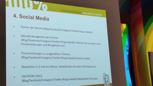 Pia Kumpmann (Leiterin des Convention Bureau Karlsruhe & Region) gab einen Überblick zu den diesjährigen Veranstaltungen und einen Ausblick auf das, was für 2024 geplant ist. Der Austausch sowie die Vernetzung über Social Media, Newsletter und Pressemeldungen sollen 2024 weiterhin verstärkt werden, mehrere Messepräsenzen sind schon geplant und auch eine Study Tour soll im nächsten Jahr wieder stattfinden.
