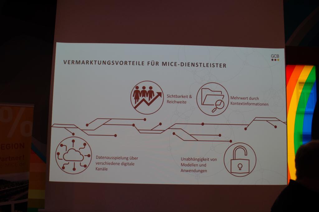 Die Referentin Ursula Winterbauer vom German Convention Bureau (GCB) behandelte das Thema Open Data Mice: wie die Vermarktung von MICE-Dienstleistungen dank Open Data profitiert. „Open Data“, das heißt der freie Zugang zu den für die Nutzer relevanten Daten und Contents über unterschiedliche digitale Touchpoints hinweg, wird im Zuge der digitalen Transformation zu einem wesentlichen Faktor im nationalen und internationalen Wettbewerb.